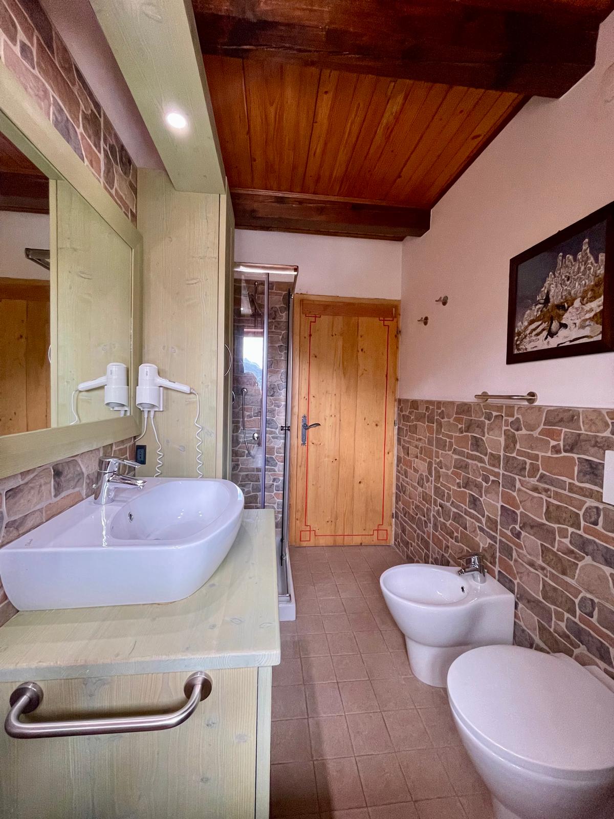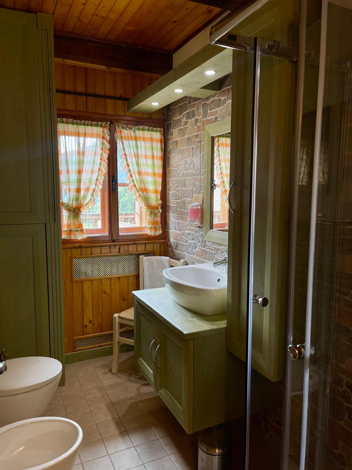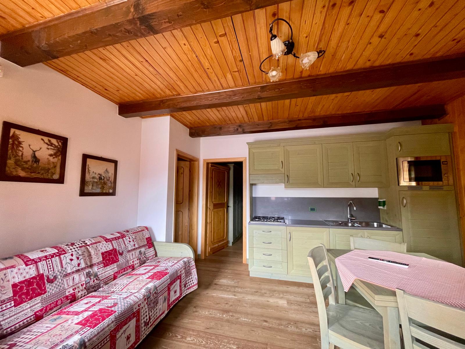 L’appartamento è composto da una luminosa e accogliente zona giorno, attrezzata di tutto punto con frigo, freezer, forno combinato (microonde + tradizionale), fornelli tradizionali e con un divano letto matrimoniale. Dispone di una camera da letto matrimoniale rivestita in legno e di bagno con doccia. Il terrazzo completo di tavolo e panche, permette di godere di un bellissimo panorama sulla vallata sottostante.